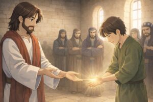 マルコによる福音書3章に出てくる、片手の萎えた人の癒しの場面では、人々(特にパリサイ人たち)は、イエス様が安息日にその人を癒すかどうかを注意深くうかがっていました。これは、命に関わらない病気の治療が安息日の労働とみなされ禁じられていたという、当時のユダヤ教の慣習に基づいています。